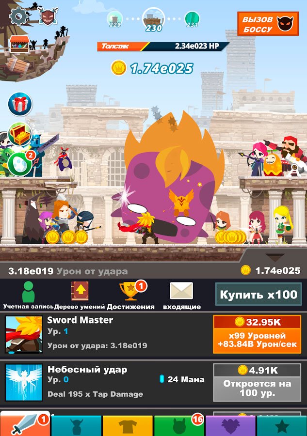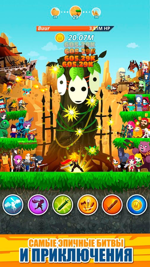 Битва не была окончена, она продолжается до сих пор. Ты должен скачать Tap Titans 2 на андроид и продолжить свое участие в этой эпической истории о защите мира. Игроку вновь предстоит оказаться в центре событий и попытаться защитить мир от жестоких титанов. Они снова пришли в мир людей и принесли за собой боль и тревогу. Все человечество находится в жуткой опасности и тебе как мечнику предстоит изобрести новые способы, которые помогут выиграть эту битву. Против тебя выйдут еще более опасные монстры, которым будет тяжело противостоять. Стань еще сильней и заимей сильных союзников. Титаны хотят сразиться с тобой, а ты должен верить в свою победу. Бери меч в руки и начинай эпичную битву с ордами Титанов.