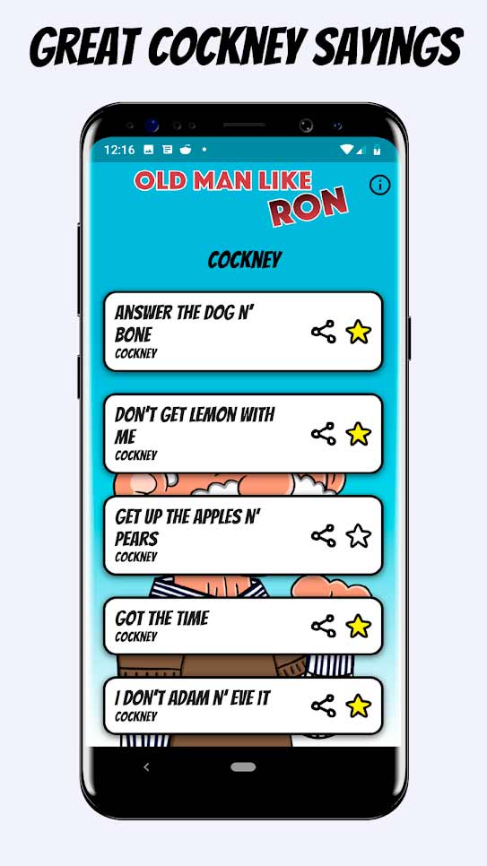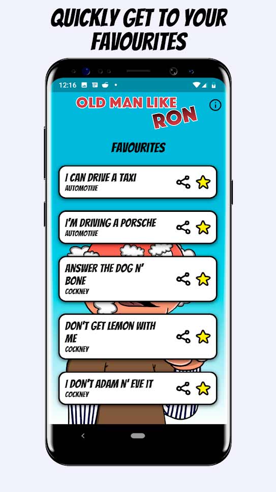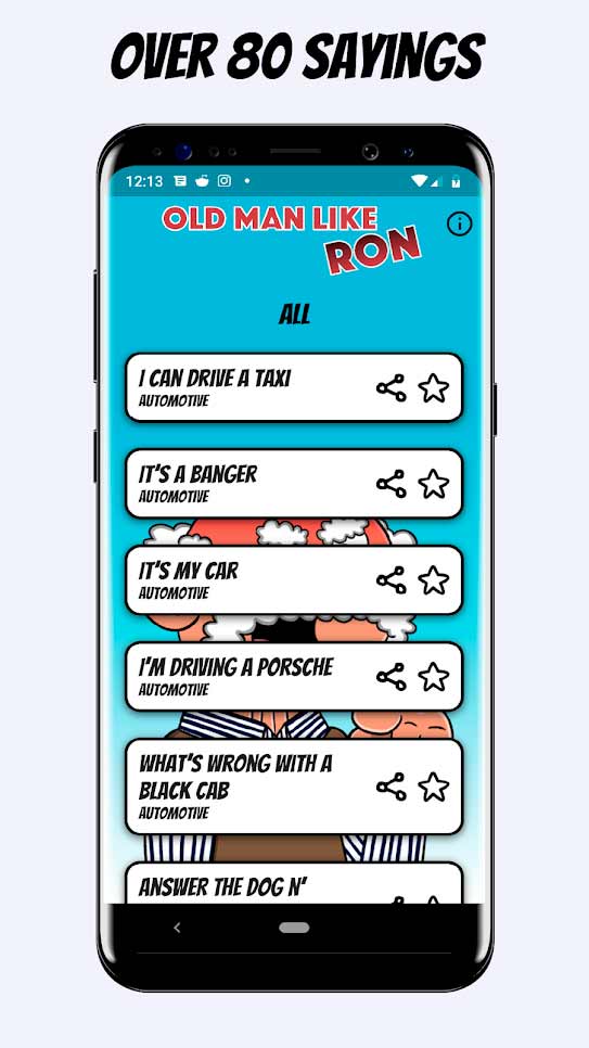 Old Man Like Ron Soundboard – это уникальное приложение, в котором вы услышите занимательные высказывания старика Рона, прославившегося своим характерным голосом. Его разносторонний взгляд на жизнь придется по вкусу всем любителям занимательных философских фраз. Наиболее интересные моменты его речи вы всегда можете отправить друзьям, чтобы вместе посмеяться, а иногда и задуматься над глубокомысленностью сказанного стариком.