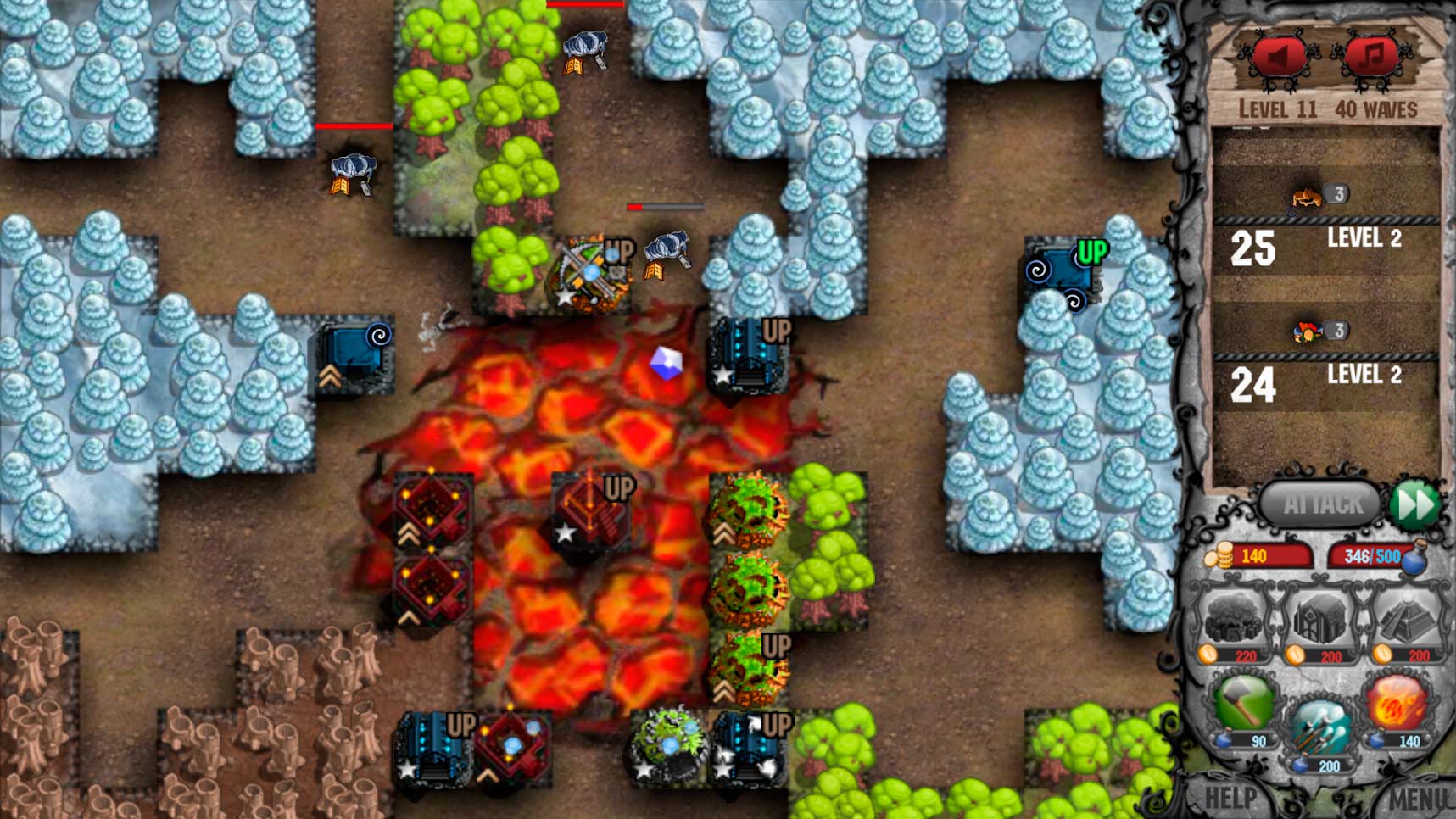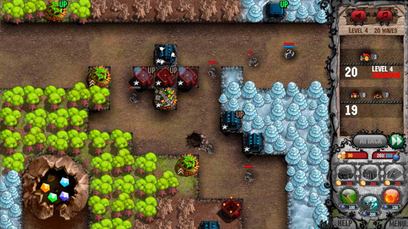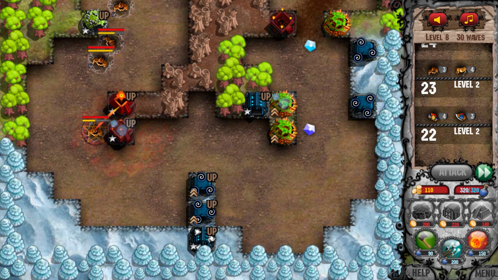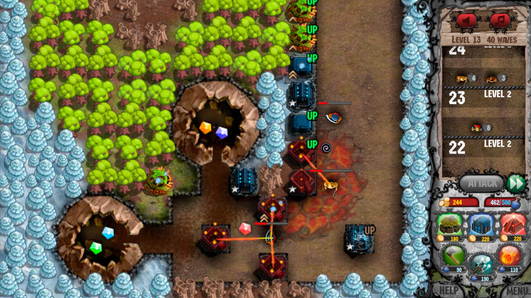 Cursed Treasure Tower Defense – это приложение в жанре классической защиты башен, в котором вы будете противостоять наглым захватчикам, пытающимся отобрать нажитые вами за долгие годы сокровища. Под вашим командованием будут многочисленные башни, способные разнести в пыль тысячи врагов. Проанализируйте особенности соперника, определитесь с тактикой, грамотно расставьте оборонительные сооружения и начинайте великую битву.
