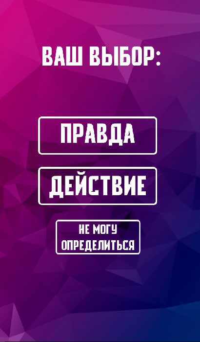 Правда или Действие – это идеальное приложение для любой вечеринки, открывающее настоящий простор для веселья. Тут забавные задания перемешаны с неприличными вопросами, которые заставят покраснеть даже самого нескромного человека. Если хватит смелости, попробуйте дойти до конца и узнать все возможности этой увлекательной игры. Прекрасное настроение и уйма положительных эмоций от игрового процесса вам гарантированы.