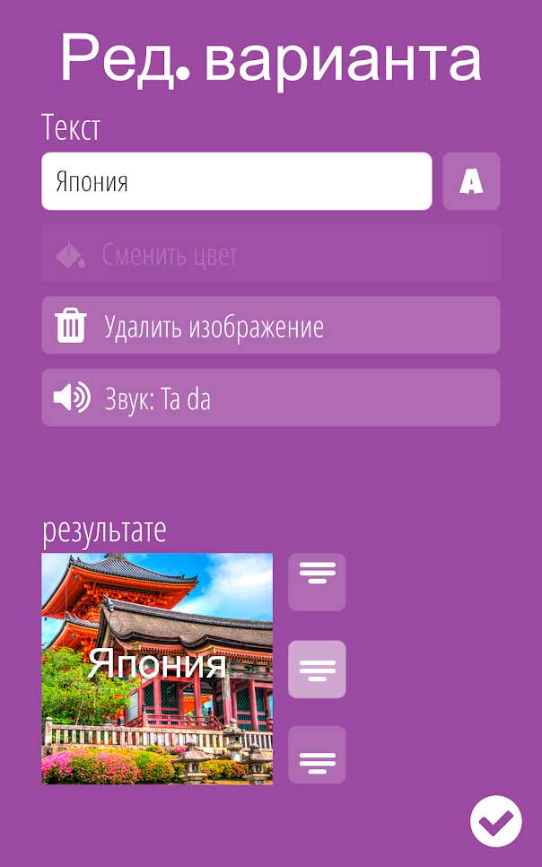 Несколько видов рулетки ждут всех любителей положиться на судьбу. Тут не нужно лишний раз думать или ломать мозг над очередной задачей с одинаковыми на первый взгляд вариантами ответа. Создавайте свои судьбоносные рулетки и используйте их вместе с друзьями при любом удобном случае. С этим приложением вы всегда сможете выбрать.