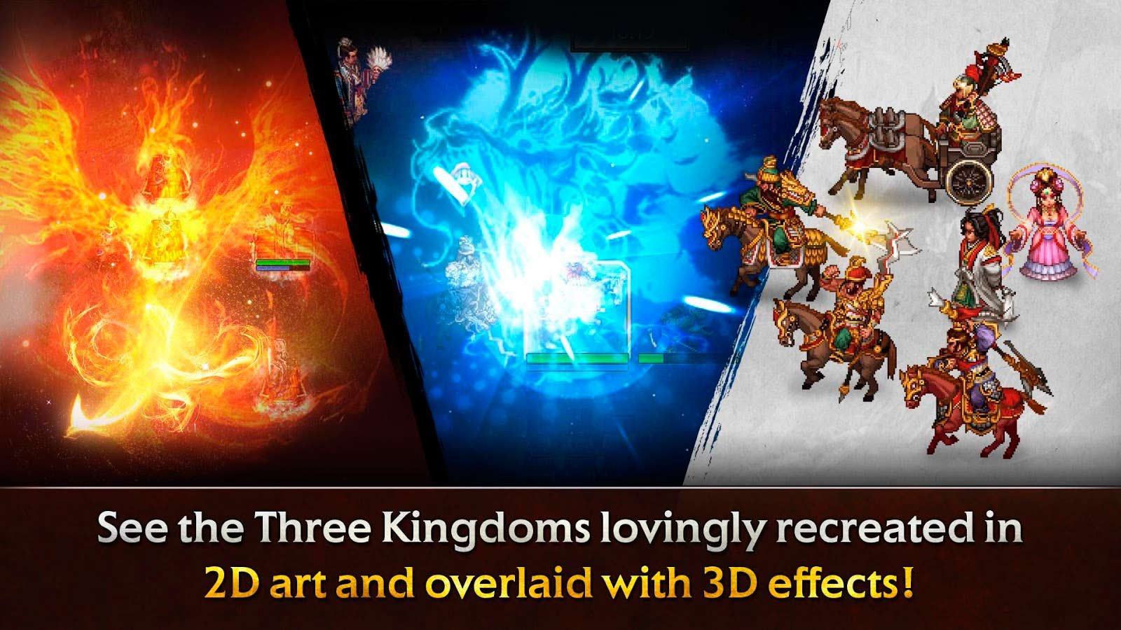 Роман о временах, когда существовало Троецарствие, теперь предлагает погрузиться в его атмосферу игроку и почувствовать все это напряжение. Для этого достаточно лишь скачать Romance of the Three Kingdoms на андроид и уже можно будет принимать участие в великих битвах по всему огромному миру. Вы должны будете получать наслаждение от классического игрового геймплея и графики. Кроме того будет особенно интересно участвовать в классических РПГ действиях. Попробуйте показать всему Троецарствию свою мощь, ум и силу и победить в решающих схватках за империю. Присоединяйтесь к империи Цао Цао и покажите, насколько вы готовы к следующим приключениям.Игрок, когда сможет скачать Romance of the Three Kingdoms на андроид, должен будет приготовить все имеющиеся у себя таланты, чтобы победить в этих увлекательных битвах. Придумайте свою собственную и очень эффективную стратегию и с ее помощью добирайтесь до новых свершений и трофеев. Вас ждут очень увлекательная битва вместе с другими игроками огромной вселенной. Выполняйте огромное количество разнообразных заданий и выбирайтесь вперед в стремлении стать великим воином. Вас ждут динамичные битвы в режиме онлайн против соперников со всего мира.