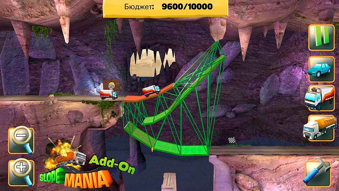 Как только решите скачать Bridge Constructor на андроид начинайте строить мост через огромные скалы, возводите его через реки и потом проведите эксперимент, который наглядно покажет, способен ли ваш мост выдержать такие испытания. Все это не только выглядит, но и ощущается очень интересно и весело. Начните проверять грузоподъемность построенного вами моста изначально с помощью обыкновенных легковых автомобилей, потом заводите грузовик и наконец, приготовьте к самому тяжелому испытанию на автоцистерне.