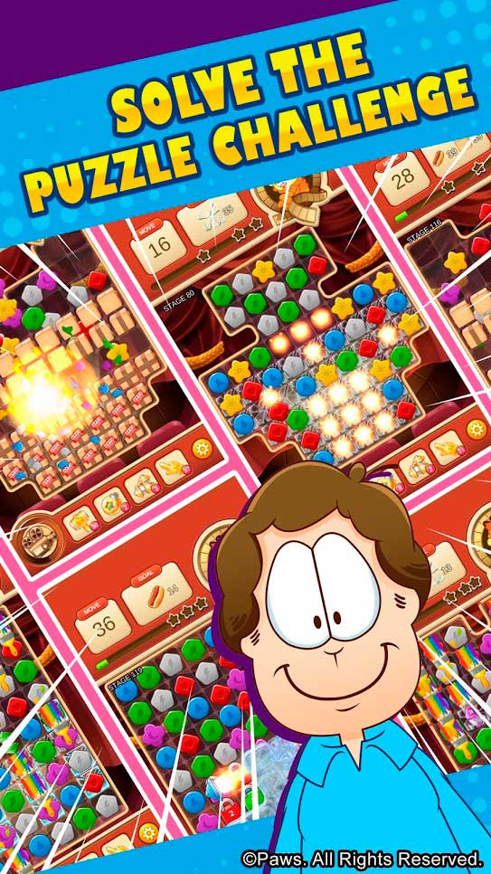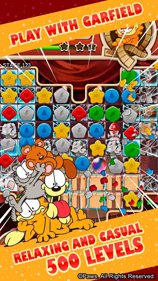 Garfield Puzzle M – это отличная новая головоломка, в которой вы вместе с легендарным Гарфилдом и его друзьями сможете поучаствовать в веселом приключении. Обычная механика «три в ряд», используемая в этой игре, очень проста, так что любой желающий может быстро ее выучить. Нужно лишь собирать определенные комбинации, получать за это очки и открывать новые увлекательные уровни. Сложность игры увеличивается постепенно, а для прохождения наиболее тяжелых уровней есть особые бонусы.