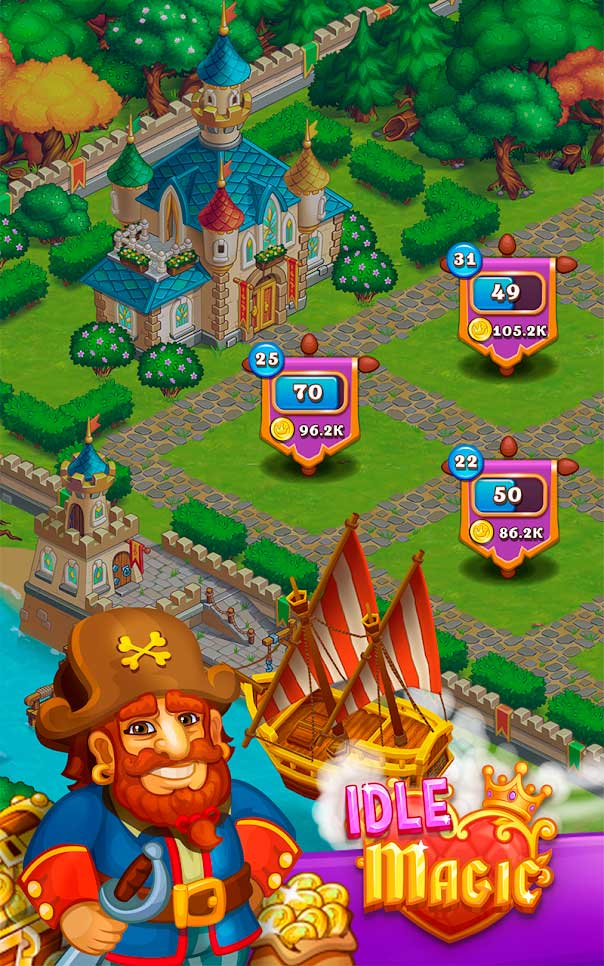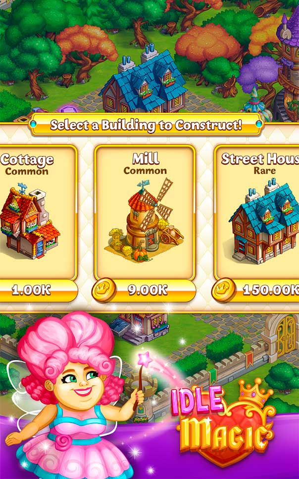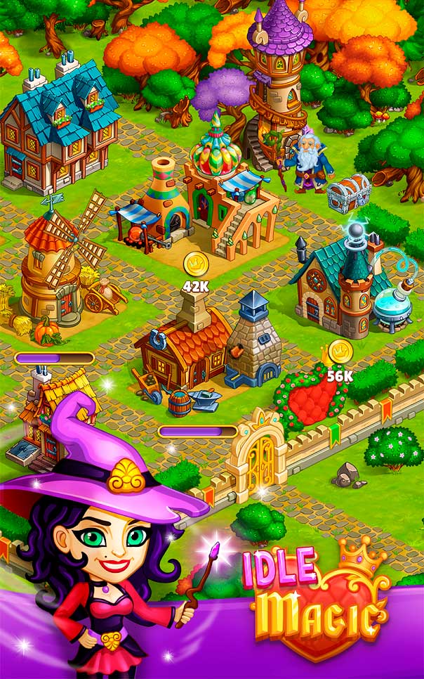 Idle Magic city – это захватывающие приключения в волшебной стране, где небольшая ферма фей под должным руководством может быстро превратиться в шикарный город. Игровая механика тут очень проста – нужно лишь вовремя нажимать на домики и собирать с них ценные монетки. Обитателями этого города являются всякие фантастические существа: эльфы, гномы, ведьмы, волшебники и даже могучие драконы. Наслаждайтесь неспешным игровым процессом, пока ваше сказочное королевство процветает.