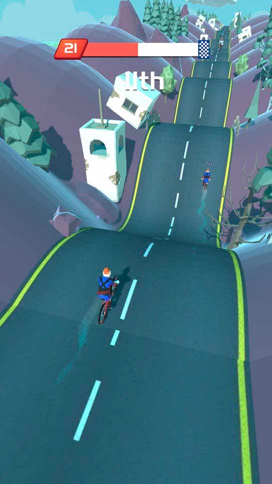 Горные велосипеды – это веселые гонки на велосипедах для вашего мобильного телефона. Участвуйте в динамичных заездах по крутым склонам на горных великах, соревнуясь с множеством людей со всего мира. Играть тут очень легко, но стать первым на трассе, где куча народа пытается друг друга обогнать, не так-то просто. Тренируйтесь, участвуя в многочисленных гонках, и вы непременно станете победителем в масштабном захватывающем заезде.