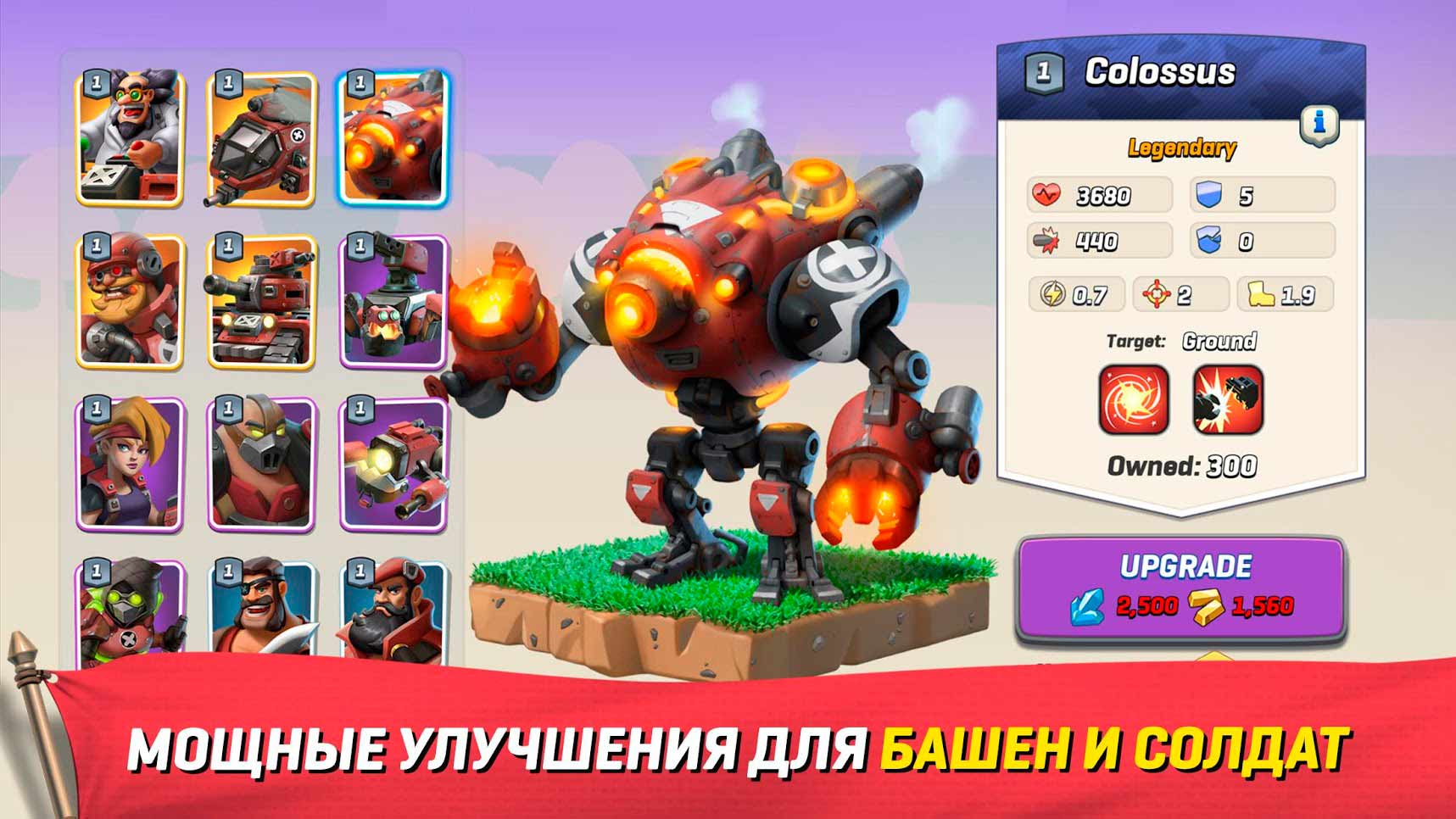 Boom Battlefield – это новая динамичная стратегия в жанре защиты башен с уникальной механикой, крутыми спецэффектами и увлекательным геймплеем. Отстраивайте и улучшайте кучу башен, уничтожайте ими наступающие вражеские войска и получайте золото, необходимое для дальнейшей модернизации героев и технологий. Ведите свою великую армию к победе, сражаясь с игроками со всего мира в этом удивительном приложении.