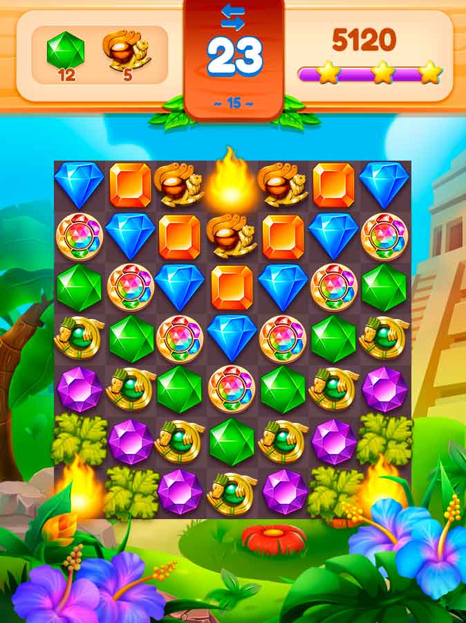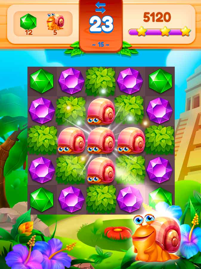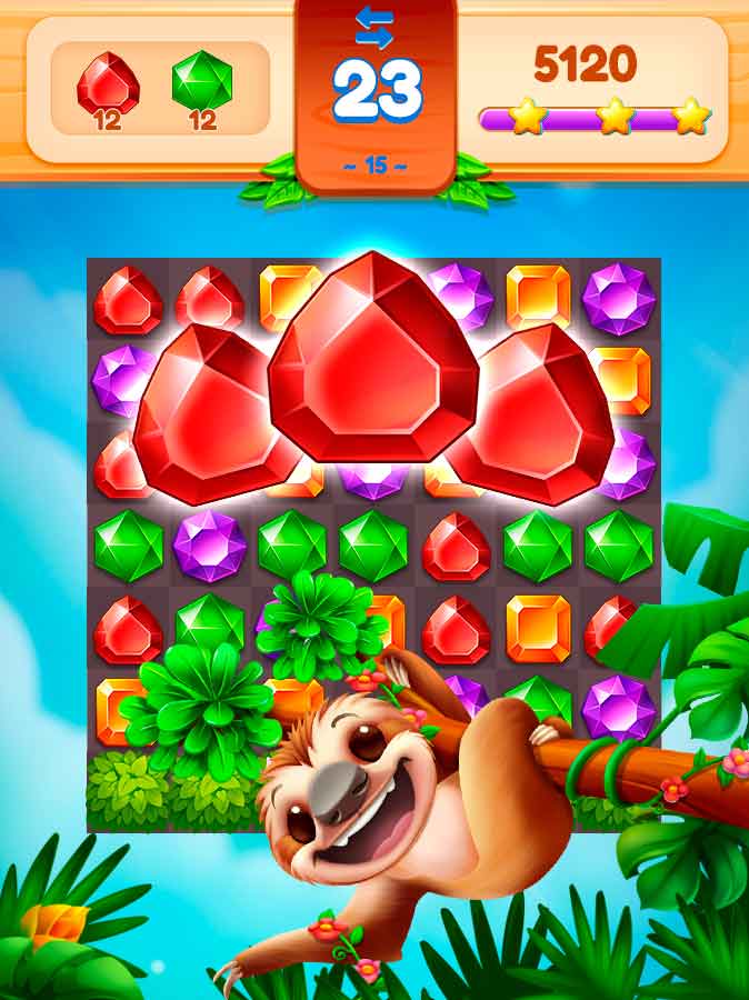 Драгоценная страна джунглей – это красочная головоломка с классической механикой «три в ряд» и множеством захватывающих уровней. Все любители подобных игр могут показать тут свои лучшие стратегические приемы и вырваться в топ рейтинга. Проходите уровни, получайте награды и открывайте доступ к новым, более сложным головоломкам. В этом пестрящем красками приключении вы всегда отлично отдохнете и получите заряд бодрого настроения на весь день.