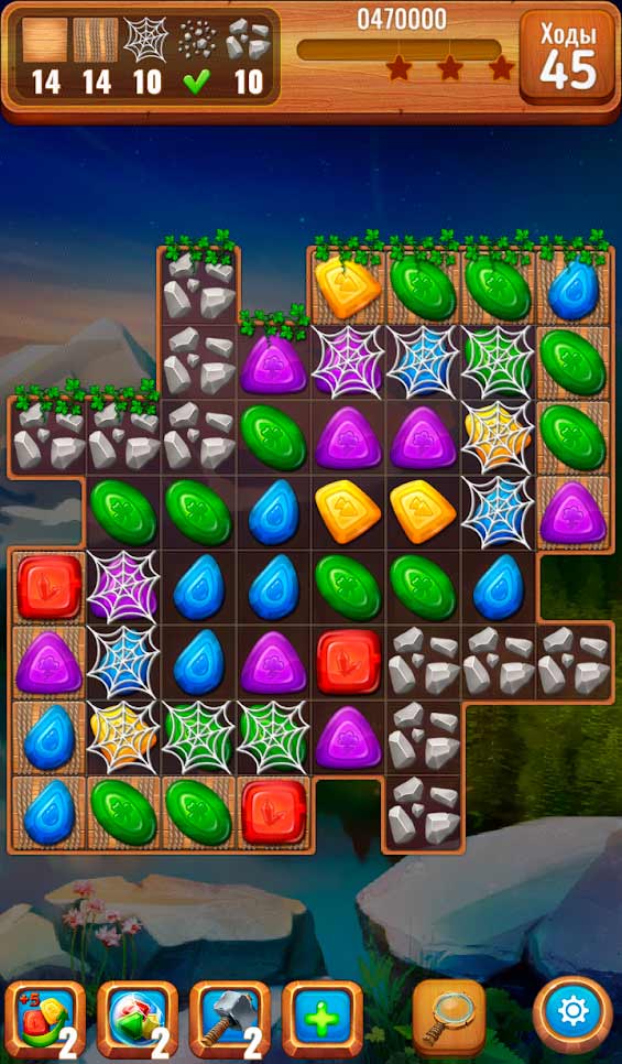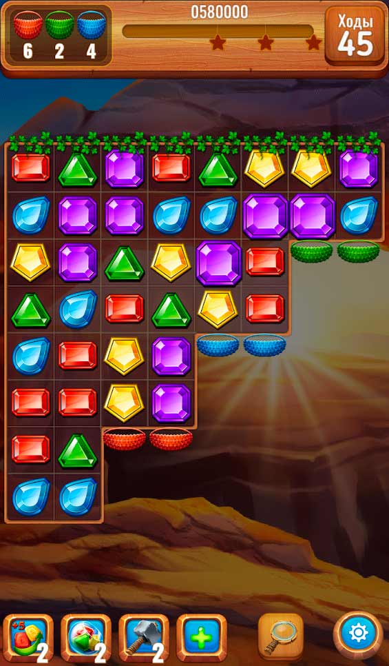 Новые самоцветы или кристаллы ? – это продолжение популярной игры для мобильных телефонов, в которой вам предстоит показать все свое умение разгадывать головоломки в жанре «три в ряд». Выбирайте подходящую сложность и начинайте проходить уровень за уровнем, отдыхая за приятным игровым процессом. Красочные фоны радуют глаз, вместе с отличным музыкальным оформлением создавая уникальную атмосферу спокойствия, столь знакомую всем любителям приложений подобного жанра.