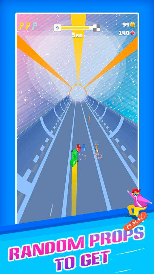 Fly Skater – New – сумасшедшие гонки на коньках, по фантастическим трассам. Объезжайте массу препятствий, используйте специальные реквизиты и получайте звание мастера среди конькобежцев. Побеждайте и получайте во владение новые скины фигуриста, используйте их для улучшения своих показателей и каждый день вскрывайте сундуки. Это полностью бесплатная и затягивающая игра, с простым управлением и понятным геймплеем. Вас ожидают 100 уровней бесконечного веселья, мчитесь вперед и развивайте скорость, чтобы выиграть чемпионат и набрать высший балл, заняв первую позицию. Играть легко, пройти все уровни труднее.