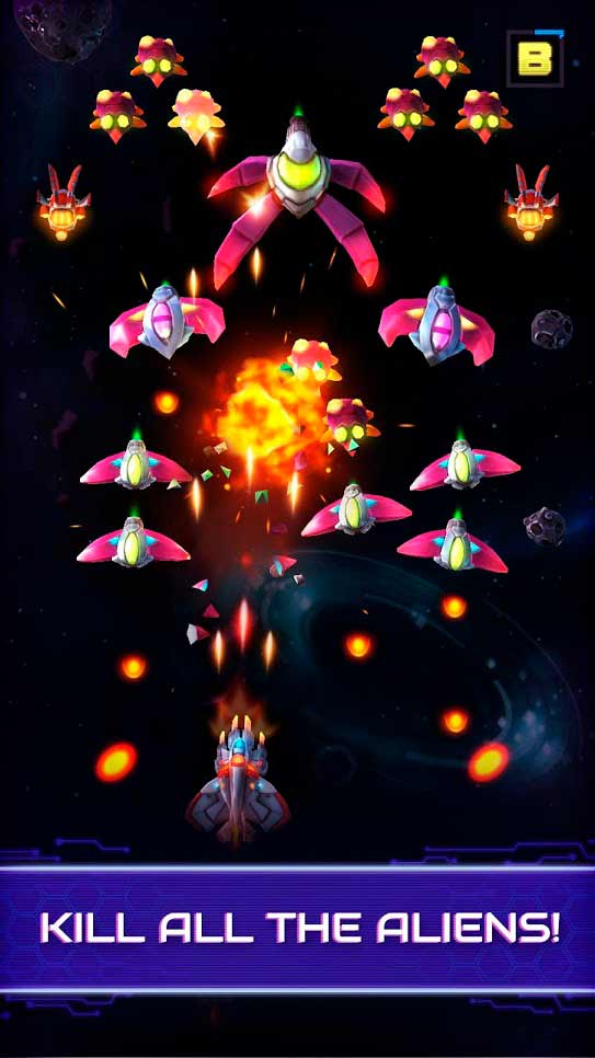 Neonverse Invaders Shoot 'Em Up: Galaxy Shooter – космический шутер с бесконечными миссиями и врагами. Отправляйтесь в путешествие будущего, возьмите на себя ответственность за вселенную и сразитесь с масштабной армией инопланетян. Касайтесь экрана, чтобы поражать цели, продвигайтесь через множество уровне и научитесь быстро уклоняться от огня армии врагов. Ретро стрелялка разработана в яркой 3D графике, продумано уже больше 100 уровней и порой вам предстоит встречаться на войне с Боссами, они сильны и кажутся непобедимыми, поэтому корабль должен быть самым мощным в истории.