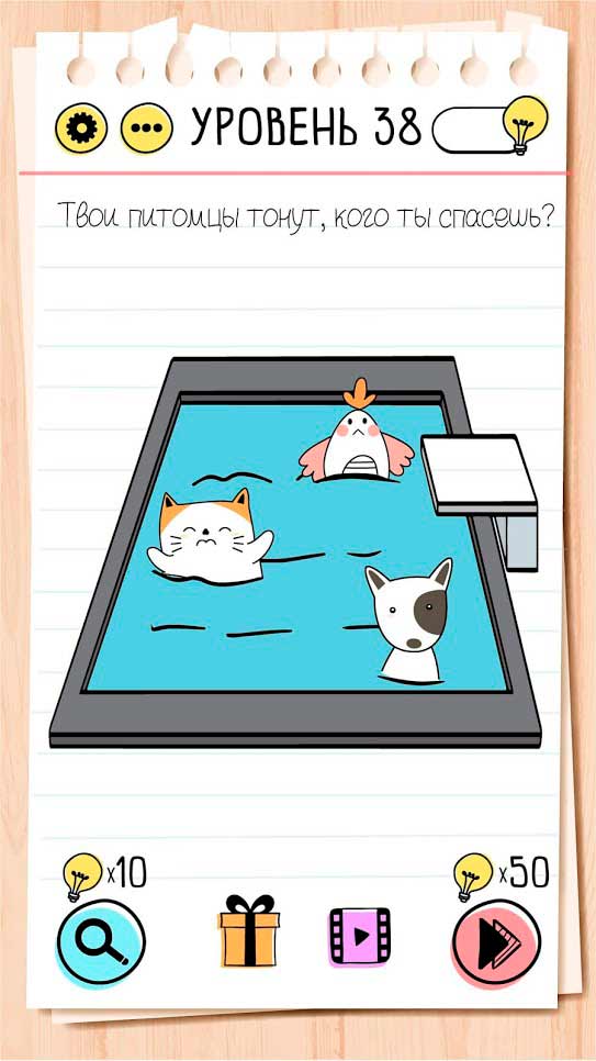 Brain Test – это классная словесная игра, в которой вас ждет куча веселых задачек. Проверьте свою смекалку и уровень интеллекта, решив все головоломки. Вопросы и ответы на них тут порой весьма забавные, так что приготовьтесь не только размять мозги, но и от души повеселиться. С таким приложением можно отлично провести время в любой компании независимо от ее возраста – семейное разгадывание задач весьма популярно, так что предложите своим друзьям и родным сыграть вместе.
