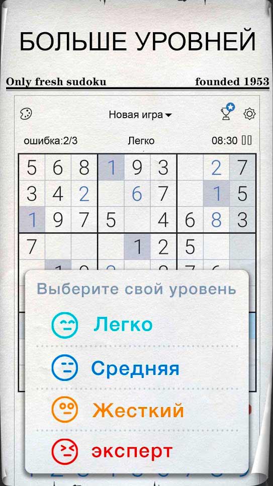Судоку – это знаменитая на весь мир игра, представленная здесь в виде мобильного приложения. Тут вы каждый день можете тренировать свой мозг и увлекательно проводит время за разгадыванием очередных загадок. Приложение будет интересно как новичкам, так и бывалым игрокам, ведь сложность уровня всегда можно настроить под каждого конкретного пользователя. Тренируйте свою память и логическое мышление, чтобы стань настоящим чемпионом этой увлекательной игры.