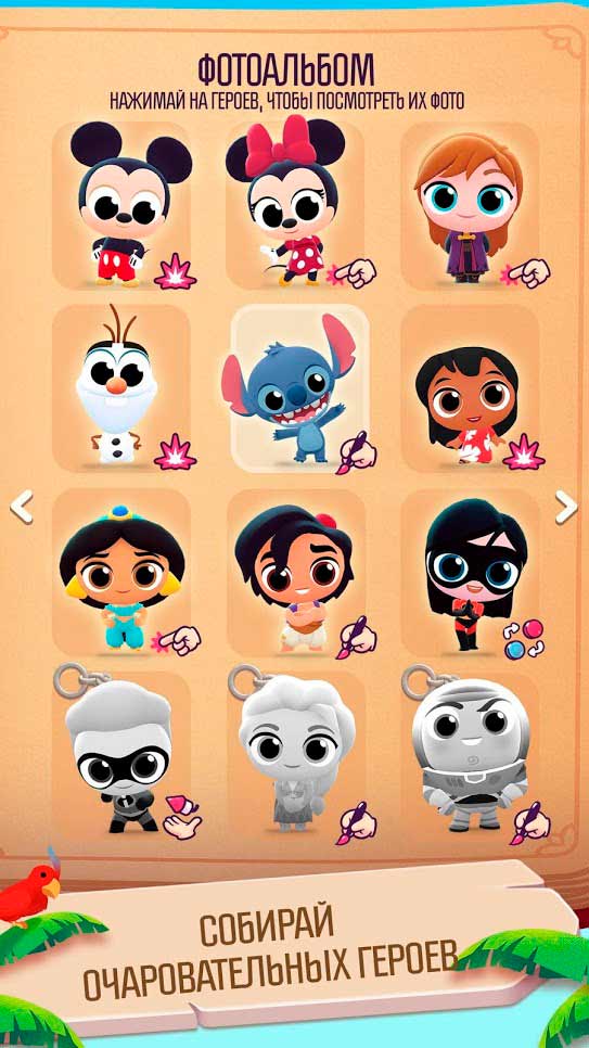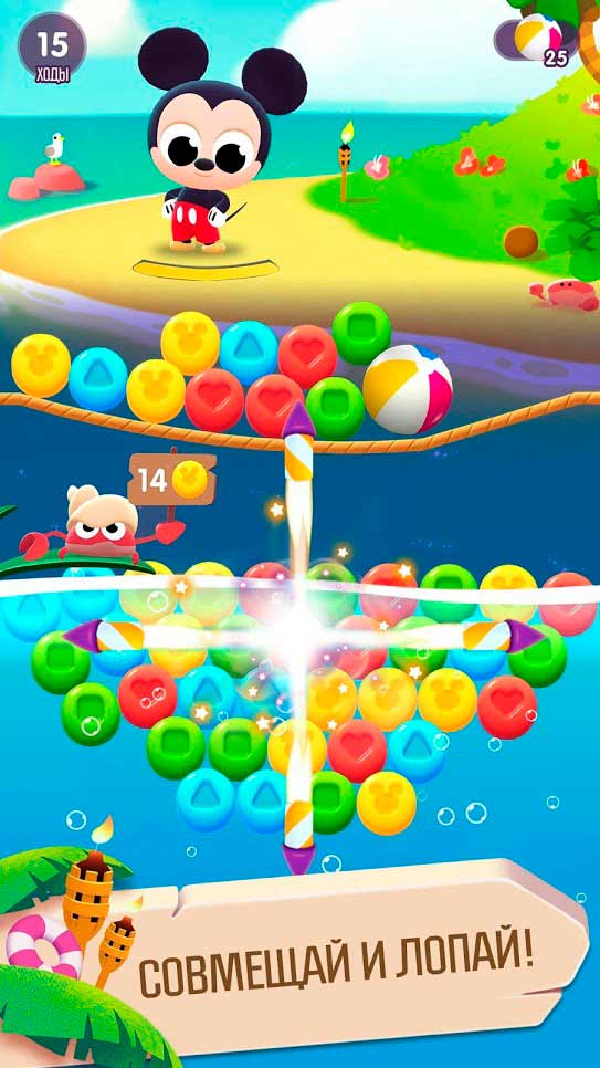 Disney Улетные Каникулы – яркая мультяшная игра с самыми любимыми персонажами от создателей Дисней и Pixar. Все герои отправляются в путешествие и хотят весело провести свой отпуск на острове. Соберите всю команду из серии Микки Мауса, Истории Игрушек, Корпорации Монстров и многих других. Они будут ходить в экспедиции, построят множество аттракционов и других мест для отличного времяпровождения. Отдыхайте на солнечных берегах, купайтесь в морях и наслаждайтесь сюжетами о лучших сказках современности. Открывайте у мультгереов свои способности, пользуйтесь усилителями, чтобы лопать как можно больше пузырьков с разными расцветками. Все моменты пользователи смогут запечатлеть на фотографии, а после ими насладиться.