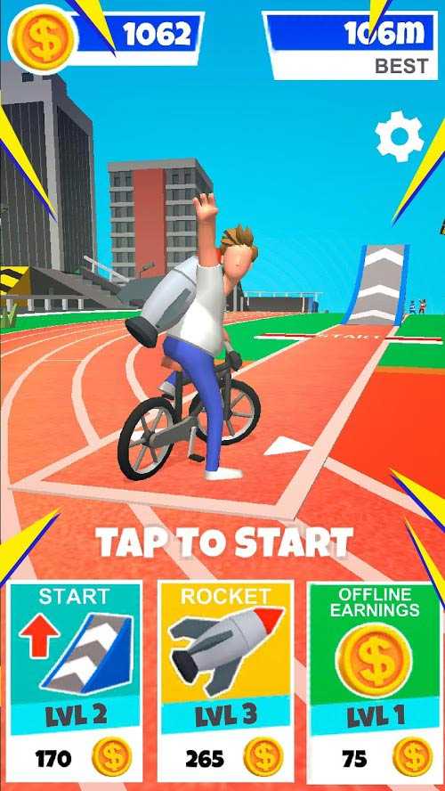 Bike Hop – это забавная мобильная аркада, в которой вы будете гонять на велосипеде, совершая умопомрачительные прыжки. Разгоняйтесь как следует и попробуйте поставить новый рекорд. Тренируйтесь в прыжках, пытайтесь быстрее набрать скорость, чтобы дистанция полета была как можно больше. Набирайте очки и бейте рекорды, развивая при этом реакцию и просто развлекаясь. С такой захватывающей игрой вы отлично скоротаете время и поднимете себе настроение в любой момент.