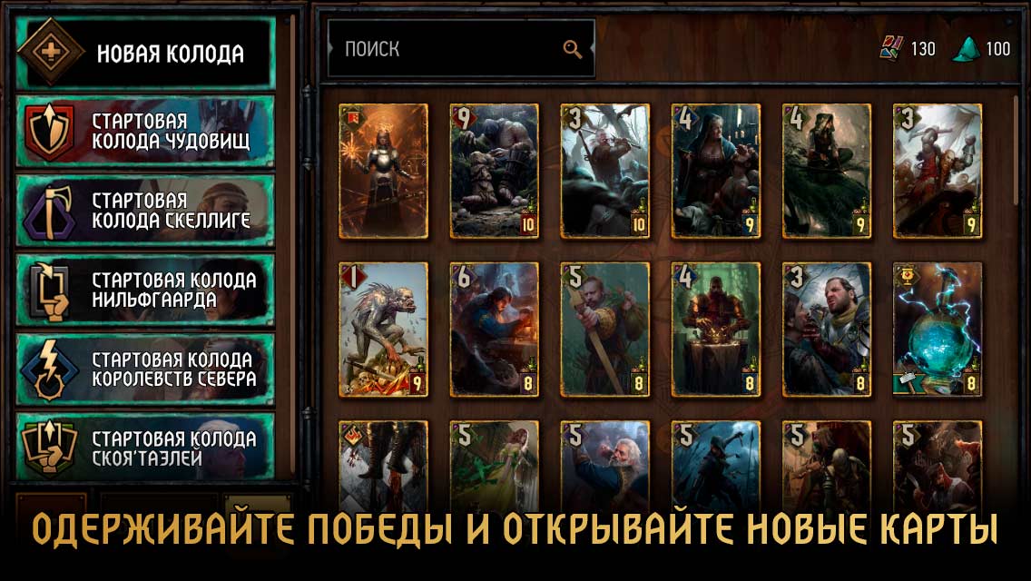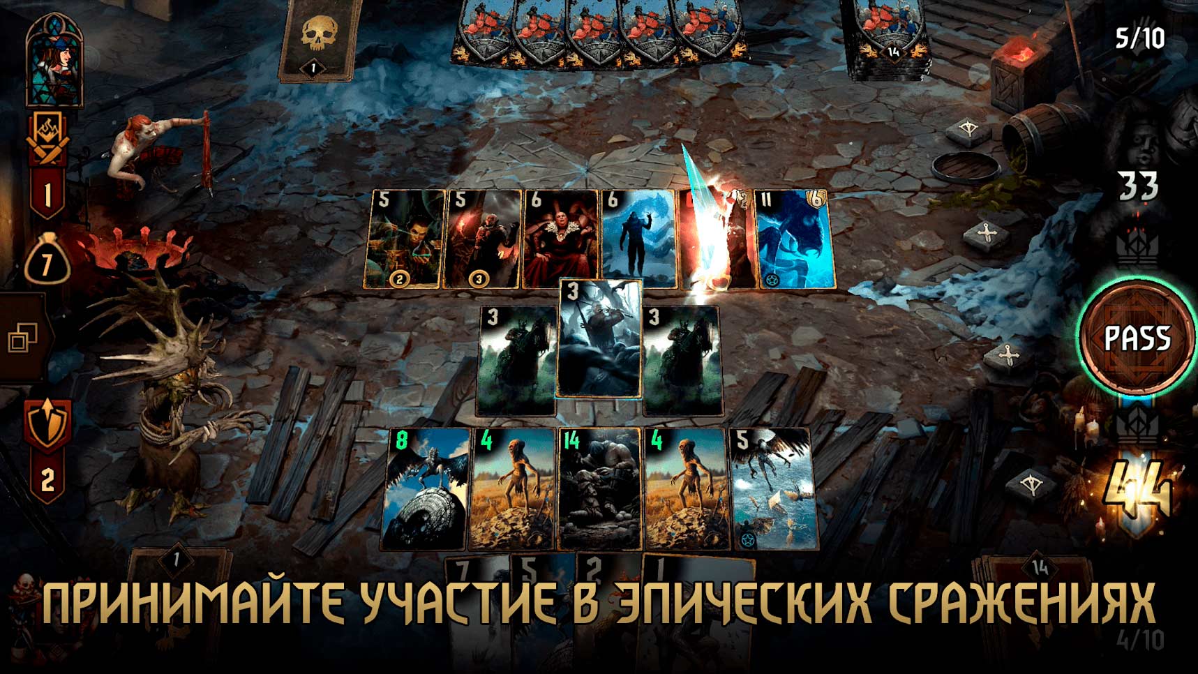 ГВИНТ: Ведьмак – это уже ставшая легендарной карточная игра из популярной игровой серии «Ведьмак», представленная в обновленном виде для мобильных устройств. Здесь вы сможете собрать уникальную коллекцию карт с изображением любимых героев фантастической вселенной, яростных чудовищ, мощных заклинаний и многих других вещей. Участвуйте в эпичных баталиях с другими игроками по всему миру, используйте разнообразные стратегии, неожиданные приемы и смелые уловки, чтобы доказать свое превосходство в бою и одолеть соперника. Тренируйтесь в суровых битвах и развивайте военное мастерство, усиливайте колоду новыми картами и наслаждайтесь потрясающими визуальными эффектами, позволяющими вновь и вновь погружаться в волшебный мир кровожадных чудовищ и храбрых героев.