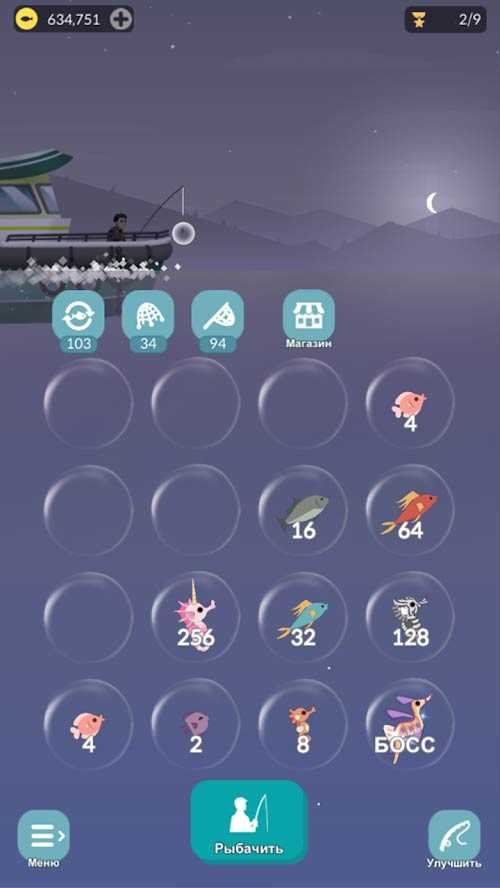 2048 Рыбалка – простая игра для ленивых пользователей и больших поклонников рыбалки. Просто соединяйте вместе пары одинаковых рыб, чтобы открыть совершенно новые и далее поочередно. Наслаждайтесь игрой, пользуйтесь моментов, чтобы расслабиться и развлечься одновременно. Вам не потребуется соединение с интернет, просто отлавливайте огромное количество морских существ и получайте большой улов. Рыба, которая будет выращена в вашем аквариуме, пойдет на продажу, а на вырученные средства уже рыбаки могут улучшить свои ресурсы. Получайте тонны удовольствия от такой рыбалки и не останавливайтесь.
