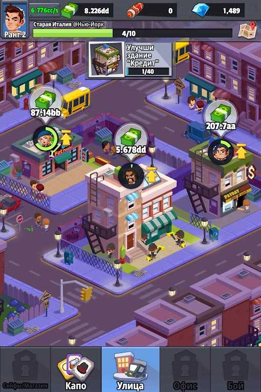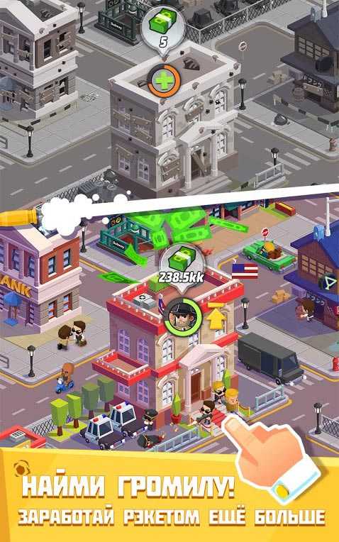 Idle Mafia – это эпичный мобильный симулятор мафии. Игра довольно сурова и реалистична, так что сразу приготовьтесь к серьезным испытаниям, увлекательным квестам и захватывающему геймплею. Создавайте новый преступный бизнес и ведите его к процветанию по трупам своих врагов. Нанимайте больше головорезов и расширяйте территорию, не забывая показать противникам кто тут теперь главный. Зарабатывайте неплохие деньги, управляя казино, клубом для джентльменов, порностудией и другими предприятиями.