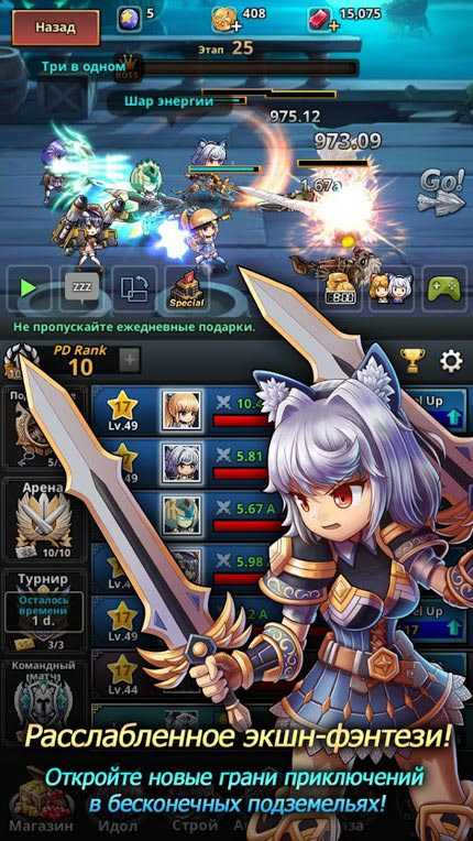Dungeon iDoll – это захватывающая ролевая игра, где вы вместе с боевыми идолами дадите отпор коварным демонам. Красочный фэнтезийный экшен отправит вас в уникальный мир приключений и динамичных сражений на арене. Соревнуйтесь с другими игроками в командных матчах, комбинируйте идолов для усиления мощи, собирайте комплекты снаряжения и уничтожайте эпичных монстров. Спускайтесь глубже в подземелье, чтобы покорить самых опасных противников и получить уникальные награды. Собирайте команду своей мечты и наслаждайтесь яркими мобильными баталиями высочайшего качества.
