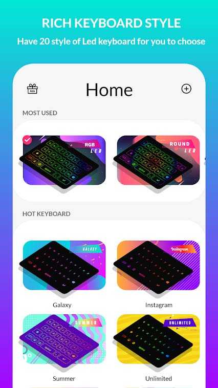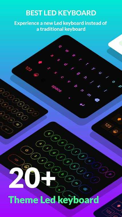 Color Light Keyboard – это яркое приложение, добавляющее красок обычной клавиатуре вашего мобильного устройства. Со светодиодной клавиатурой легче набирать текст, а разнообразные веселые скины позволяют выбрать желанный стиль и получать нотку радости при каждом печатании. Также вы можете настроить забавные звуки клавиш, получите доступ к большой коллекции стикеров, смайликов и шаблонов сообщений. Меняйте дизайн, темы, фоны и другие декоративные элементы по желанию.