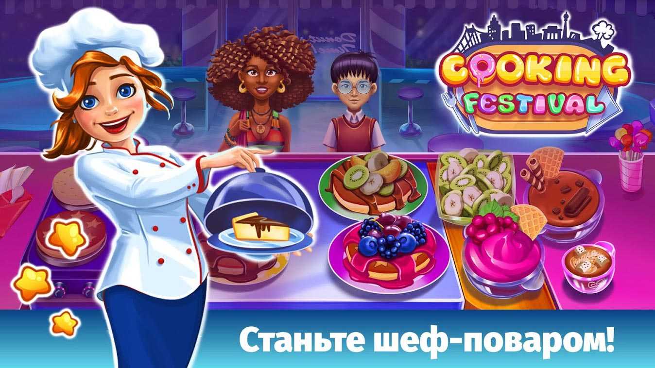 Cooking Festival – это захватывающее кулинарное приключение, в котором вы побываете во многих странах мира и научитесь готовить их блюда. Отправляйтесь на международные фестивали еды, посетите знаменитые места, наслаждайтесь достопримечательностями и занимайтесь любимой кулинарией. Вы изучите множество рецептов и станете отличным шеф-поваром. Подавайте блюда своим гостям и удивляйте их. Вам предстоит обслуживать и особенных клиентов, так что приготовьтесь поразить их своими кулинарными способностями.