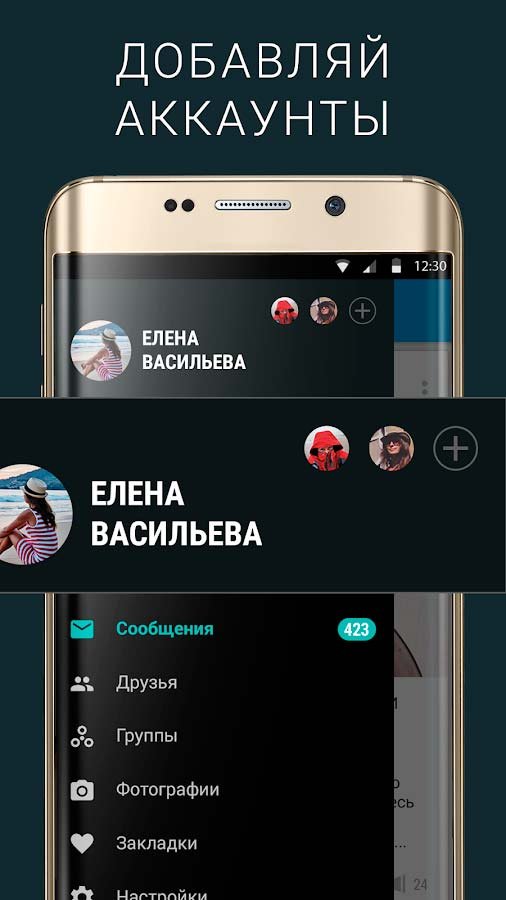 - Все те же самые функции социальной сети, как и в официальном приложении, но немного больше обычного;