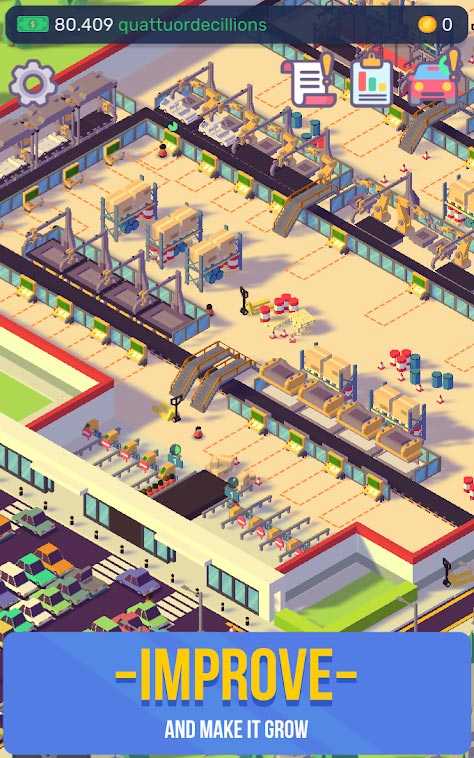 Car Industry Tycoon – это уникальный симулятор автомобильного завода, в котором вы займетесь производством разнообразных машин и развитием бизнеса. Постройте свою империю и расширьте ее до огромных масштабов: нанимайте квалифицированных рабочих, создавайте автомобильные детали, модернизируйте производство и стремитесь к успеху. Начните с небольшого завода и превратите его в известную на весь мир автомобильную фабрику. Уйма уникального контента ждет всех любителей занимательных мобильных игр.