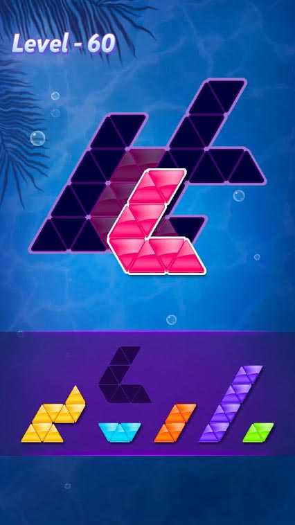 Block! Triangle puzzle: Tangram – это необычная мобильная головоломка, в которой вам предстоит разбираться с кучей треугольников. Занимайтесь увлекательным расставлением треугольников, заполняя всевозможные фигуры разных дизайнов и форм. Перетаскивайте геометрические блоки на игровое поле для завершения уровня и переходите к новым испытаниям, развивая свои логические навыки, абстрактное мышление и концентрацию. Расслабляющая атмосфера и красочное оформление подарят вам массу положительных эмоций и веселья.