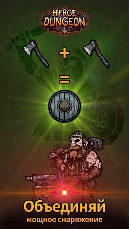 Merge Dungeon – это увлекательная ролевая игра, в которой вас ждут мрачные подземелья с кровожадными монстрами, отлично развитая система крафта и регулярные разнообразные события. Улучшайте своих героев, добывайте им достойное снаряжение и отправляйте покорять все новые территории в поисках более ценных наград. Для получения предметов высокого уровня нужно объединить несколько таких же вещей уровня ниже. Комбинируйте различное оружие и доспехи, чтобы найти оптимальное их сочетание, способное противостоять любому противнику и сделать из вас настоящего героя.