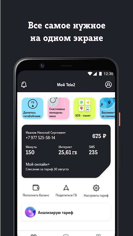 Мой Tele2 – это мобильное приложение, с помощью которого вы можете управлять услугами связи и контролировать свои расходы без посещения салонов связи. Выбирайте и меняйте тарифы, подключайте и отключайте услуги, просматривайте актуальную информацию об оставшихся на вашем счету минутах, сообщениях и гигабайтах. Управляйте своим счетом быстро и удобно, пополняя баланс онлайн, изучая статистику расходов и другие финансовые операции.