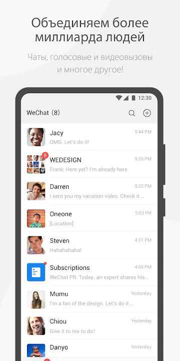 WeChat – это популярное приложение для общения, объединяющее множество людей по всему миру. Голосовые и видеовызовы, чаты и отличный набор функций делают эту программу одной из самых востребованных в своей сфере. Открывайте дополнительные возможности общения, наслаждайтесь удобством проекта, самовыражайтесь и делитесь яркими моментами своей жизни с другими людьми. Тут собрана самая свежая и интересная информация, масса разнообразного контента в свободном доступе всегда к вашим услугам, так что положительные эмоции и отличное настроение вам обеспечены.