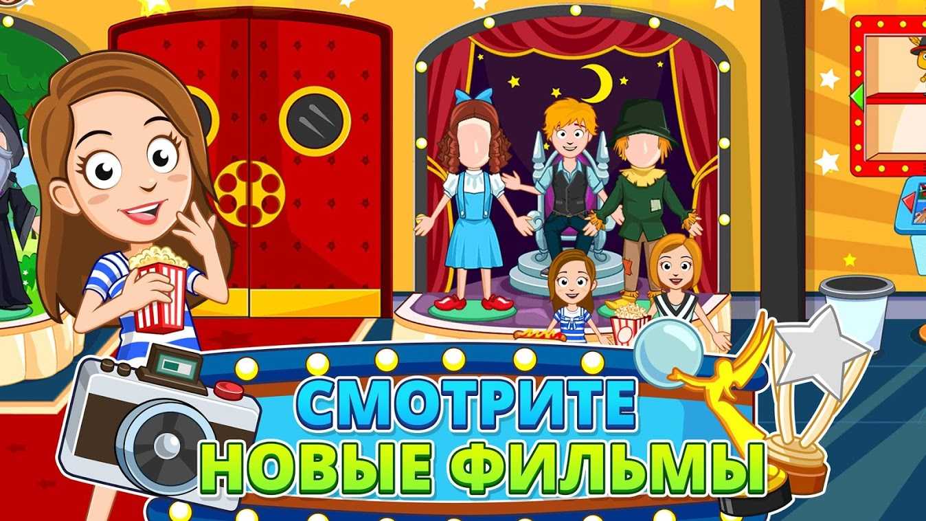 My Town: Cinema – это обучающая ролевая игра, в которой вы окунетесь в захватывающий мир кинематографа. Посетите офис киностудии, гримируйтесь и одевайтесь как настоящая кинозвезда, смотрите новые фильмы и наслаждайтесь красочным оформлением игры. Перевоплощайтесь в актера, режиссера и не забудьте побывать обычным зрителем. Множество интересных персонажей и мест, приятная графика, занимательная экскурсия по кинотеатру и еще куча всего классного ждет вас в этом мобильном приложении.