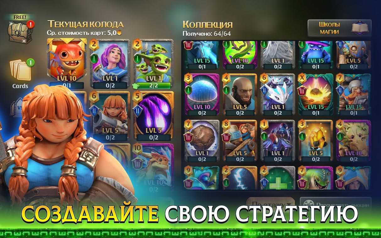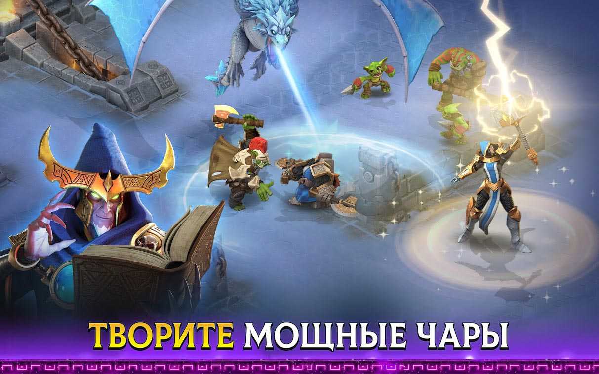 Arcane Showdown – это классная мобильная стратегия, в которой вы погрузитесь в эпичные магические сражения. Схватки в режиме реального времени на просторных аренах, сильные герои, могучие чары, широкие возможности для развития стратегии и достойное оформление проекта подарят вам массу ярких эмоций от игрового процесса. Повышайте уровень своих бойцов, создавайте непобедимую колоду и отправляйтесь сеять разрушение на бесконечных полях сражений. Объединяйтесь с единомышленниками, вступая в гильдии, чтобы вместе противостоять особо сильным противникам и просто весело проводить время в приятной компании.