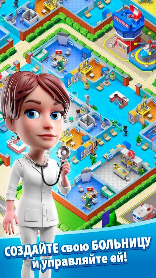 Попробуйте построить собственный больничный город и развивать его так, чтобы пациенты полюбили приходить к вам и получали неотложную профессиональную помощь. Для этого нужно скачать Dream Hospital - симулятор клиники на андроид и тогда начнется самое интересное в игровом процессе. Управляйте огромной больницей и делайте это особенно профессионально. Вы должны почувствовать эту атмосферу больничной жизни и даже познакомиться с оригинальным игровым сюжетом. Игрок станет руководителем, и должен будет нанимать персонал на работу, принимать новых пациентов, ставить более современное оборудование и, конечно же, расширяться.