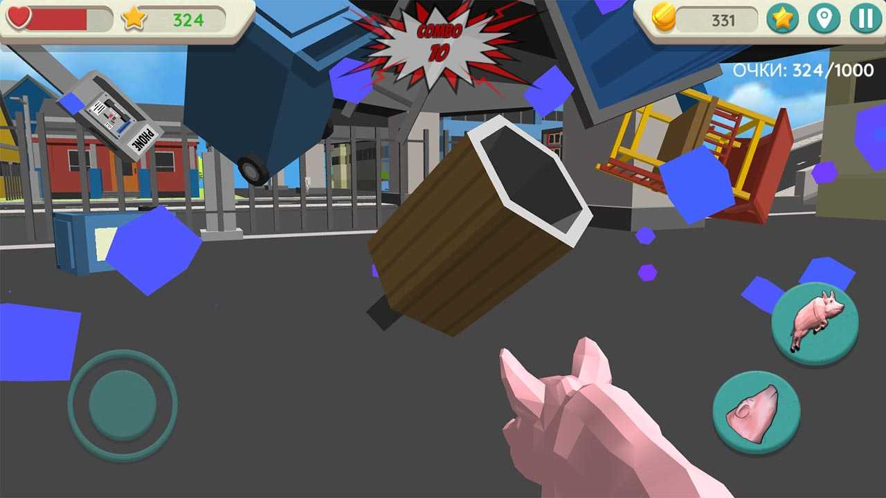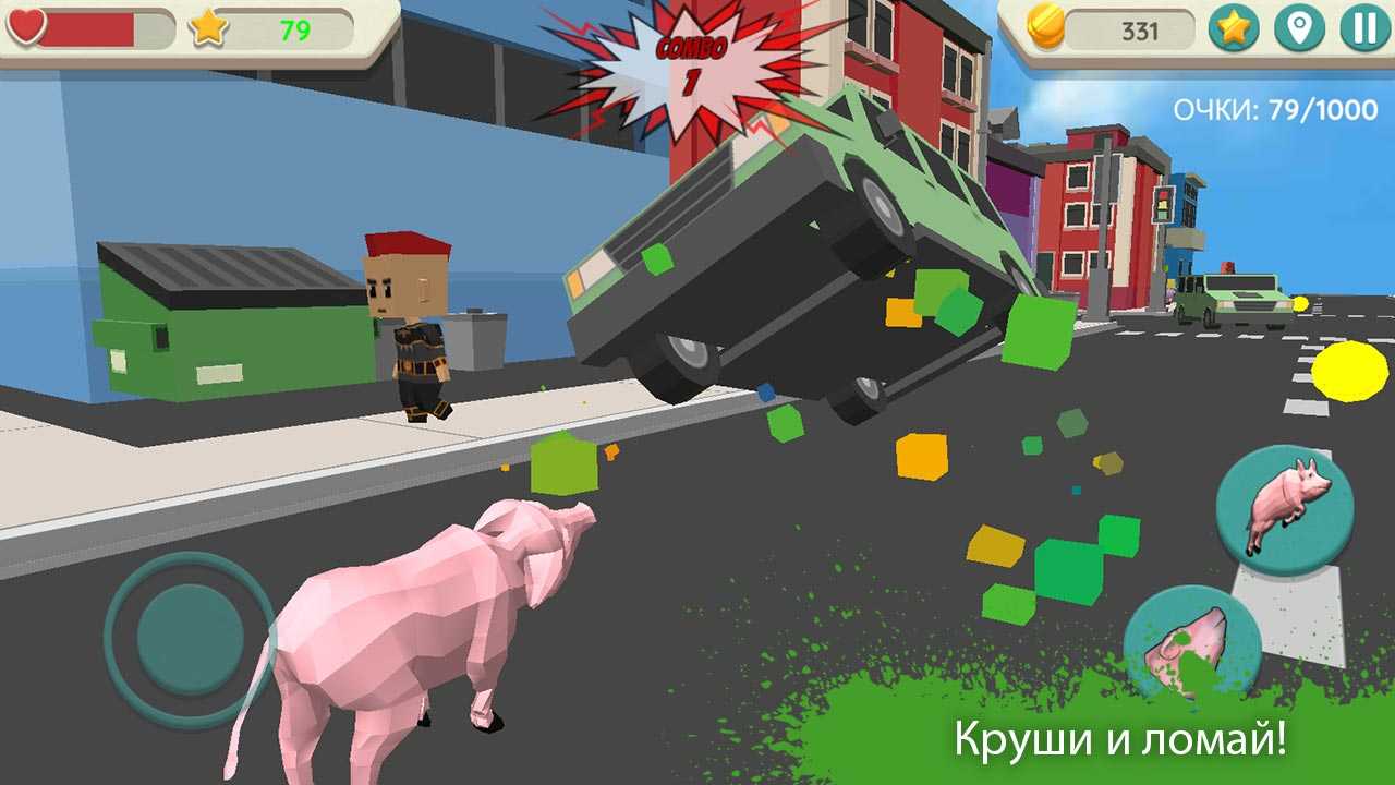 Crazy Pig Simulator – это сумасшедший мобильный симулятор свиньи, в котором вас ждет куча всего интересного. По сюжету вы сбегаете с фермы и начинаете новую жизнь на городских улицах. Вам помогает освоиться хороший друг, он же и говорит, что самым интересным занятием здесь будет разрушение всего вокруг – именно этим незатейливым делом вы и займетесь по ходу всего игрового процесса. Нападайте на прохожих, устраивайте беспорядки, ломайте любые предметы и выполняйте разнообразные задания. А если хотите увидеть летающую свинью, попробуйте отыскать реактивный ранец – вы точно об этом не пожалеете.