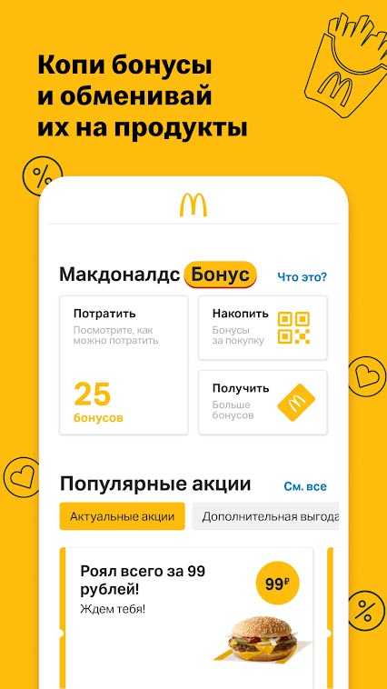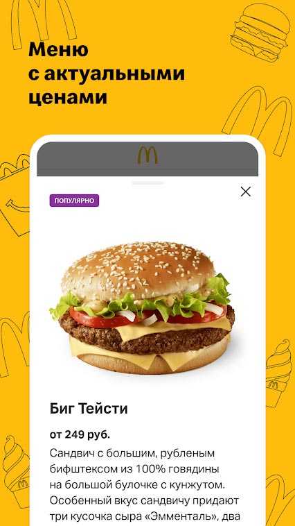 Макдоналдс – это новое официальное мобильное приложение, включающее множество полезных функций, акций и бонусов любимого миллионами заведения общественного питания. Здесь вы всегда можете проверить накопленные за покупки бонусы и обменять их по лучшим предложениям. Заказывайте доставку, изучайте подробное меню, первыми узнавайте о всех новинках, изучайте часы работы и адреса нужных кафе и всегда будьте в курсе всего самого интересного в мире Макдоналдс.