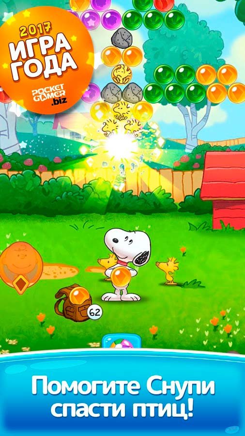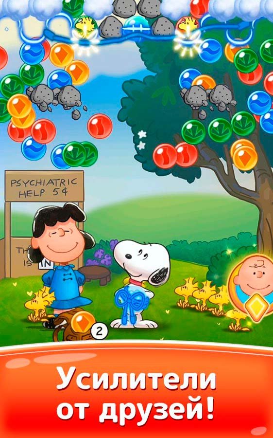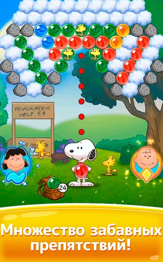 Скачать Snoopy Pop на андроид нужно обязательно, чтобы позабывать навсегда о том, что такое скука и грусть. В игре для веселья полно таких особенностей: