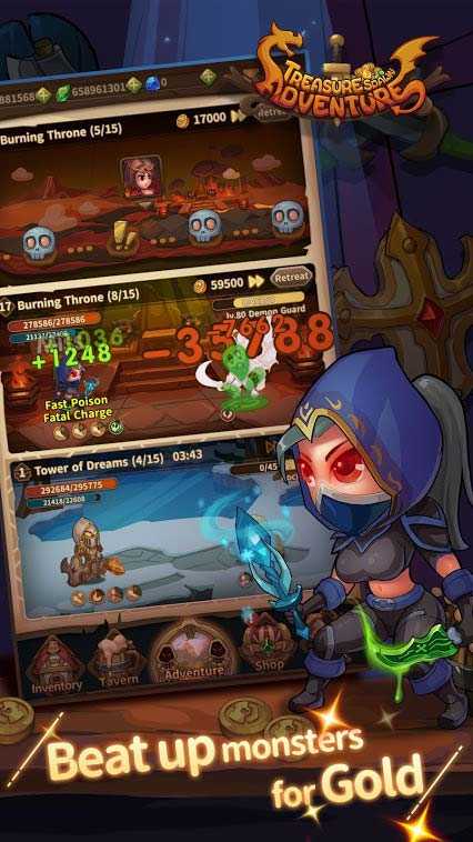 Treasure Spawn Adventure – это захватывающее мобильное приключение, в котором вы отправляетесь спасать мир от дьявола. Собирайте больше героев, комбинируйте их навыки и снаряжение, отправляйте побеждать многочисленных противников и просто наслаждайтесь красочным оформлением игры. Незатейливая механика, битвы отрядов без вашего участия, классные спецэффекты и уютная атмосфера – эти и масса других преимуществ делают проект весьма популярным среди современных игроков.