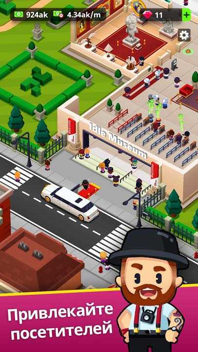 Idle Museum Tycoon – это увлекательный мобильный бизнес-симулятор, в котором вы займетесь развитием музея. Организуйте выставки, привлекайте посетителей и на полученную прибыль покупайте новые коллекции шедевров мирового искусства и культуры. Покажите миру массу удивительных вещей, и вы быстро сможете отстроить вашу изначально небольшую галерею до небывалых масштабов. Не забудьте поучаствовать в познавательной викторине, освежив свои знания.