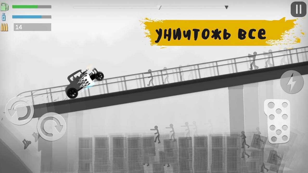 Stickman Zombie Destruction – это крутое мобильное приключение, отправляющее вашего стикмена во времена зомби-апокалипсиса. Тысячи ходячих мертвецов встретят вас на многочисленных уровнях. Гоните на своей тачке, уничтожайте врагов, соревнуйтесь с другими игроками и совершайте умопомрачительные трюки. Проходите все дальше и открывайте новые тачки, чтобы еще лучше расправляться с вездесущими монстрами.