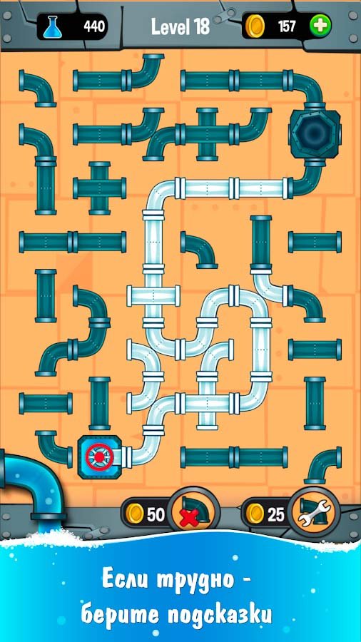 Если вы решите скачать Водопровод на андроид не сможете оторваться от таких игровых особенностей: