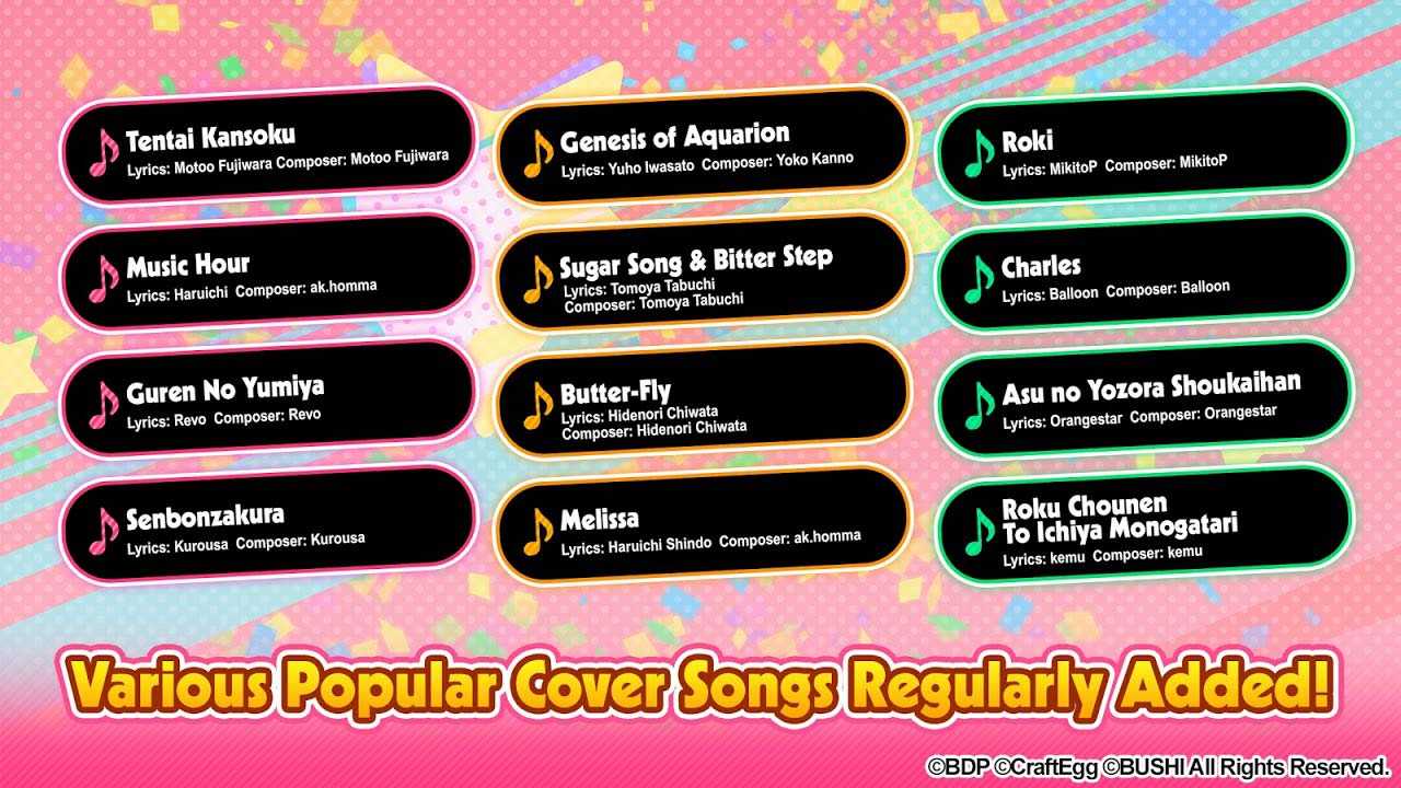 BanG Dream! Girls Band Party! – это новая музыкальная игра в красочной аниме стилистике с множеством отличных песен. Здесь собраны как оригинальные композиции, так и популярные кавер-версии от лучших исполнителей со всего мира. Простое управление и ритмичный игровой процесс подарят вам массу положительных эмоций и всегда поднимут настроение. Погружайтесь в уникальный музыкальный мир приложения и наслаждайтесь его разнообразием.