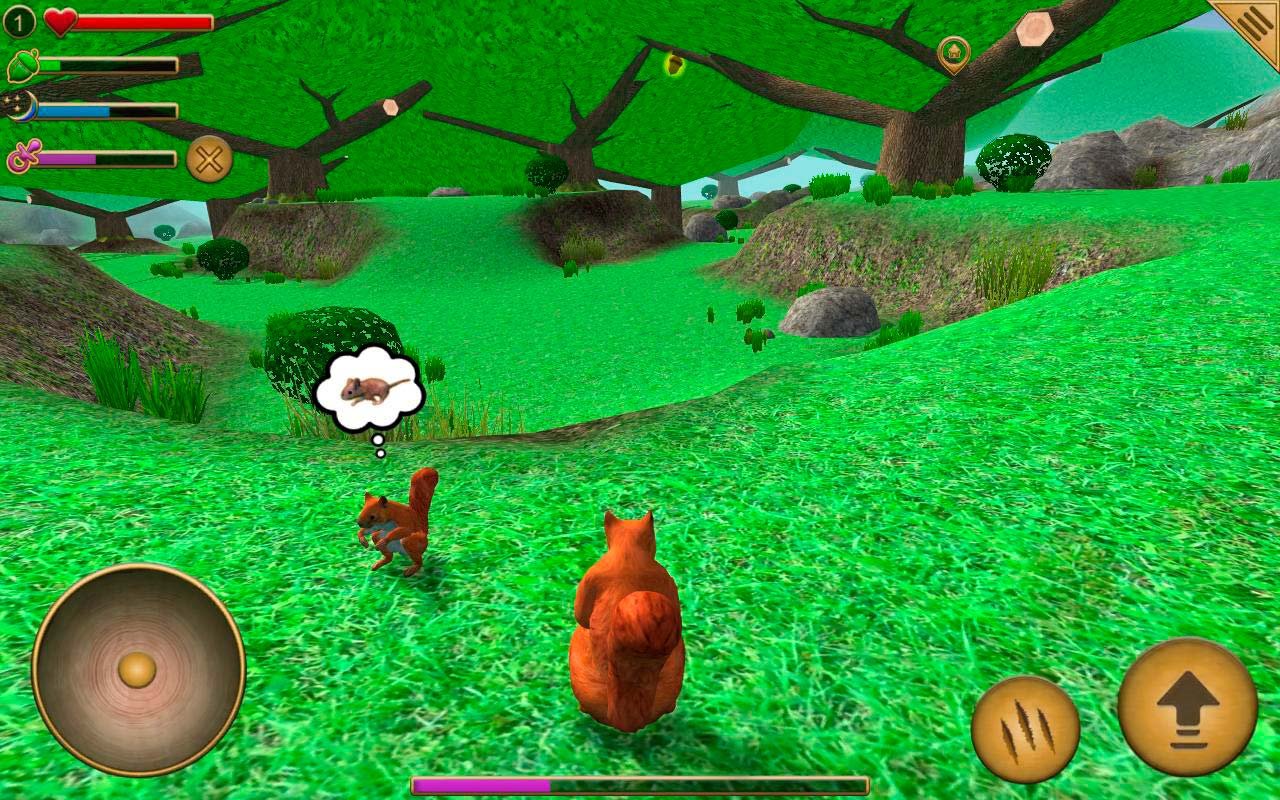 Главное в игре Симулятор белки – следить за состоянием здоровья своего подопечного и его потребностями. Вашей белке необходимо есть, пить и спать. Собирайте съедобные грибы, ягоды и желуди, чтобы утолить голод и восстановить здоровье (но не ешьте мухоморы, белке они не понравятся). Пейте воду из ближайших водоемов, чтобы утолить жажду. Засыпайте, когда наступает ночь, чтобы восстановить силы.