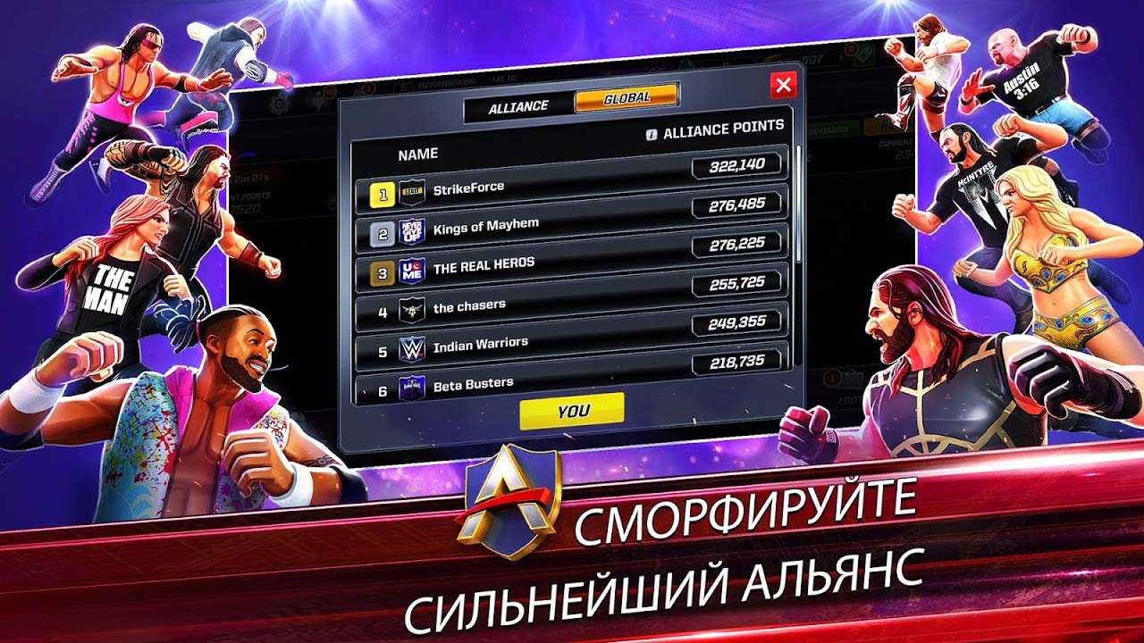 WWE Mayhem – это легендарные звезды WWE в одном мобильном приложении у вас на ладони. Тут вас ждут яркие незабываемые бои, по зрелищности не уступающие реальным. Выбирайте персонажа из множества представленных вариантов, изучайте его боевой стиль и оттачивайте технику, чтобы стать величайшим чемпионом на ринге. Участвуйте в еженедельных событиях и получайте крутые награды, делая ваших персонажей еще мощнее.