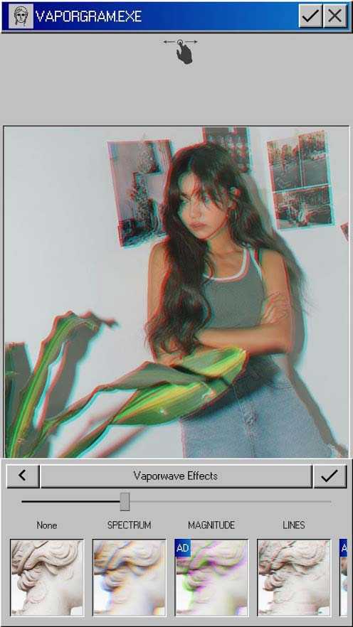 Vaporgram – это удобное мобильное приложение для редактирования фотографий с интуитивно понятным интерфейсом и широким набором функций. Выбирайте из множества доступных вариантов настройки эффектов изображений и создавайте уникальные творения. Добавляйте на них наклейки, текст, меняйте фон и работайте с деталями, чтобы придать картинке желанный вид.