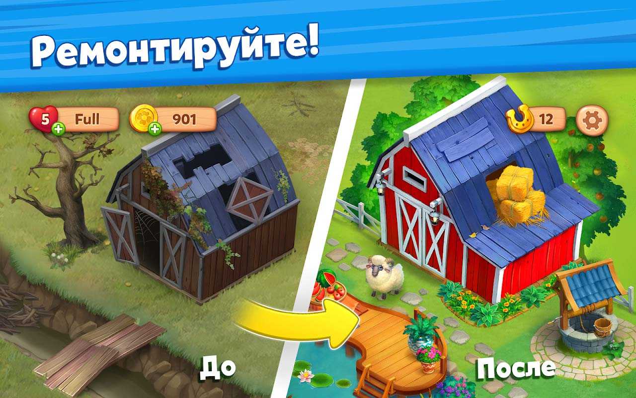 Farmscapes – это увлекательная мобильная головоломка с простой механикой и яркой графикой. Обычные фермерские дела еще никогда не были так занимательны, городская суета отступает на второй план и вы окунаетесь в приятную сельскую атмосферу. Эта ферма станет отличным местом для отдыха в любой день. Красочные визуальные эффекты наряду с захватывающей сюжетной линией подарят вам массу положительных эмоций и всегда поднимут настроение.