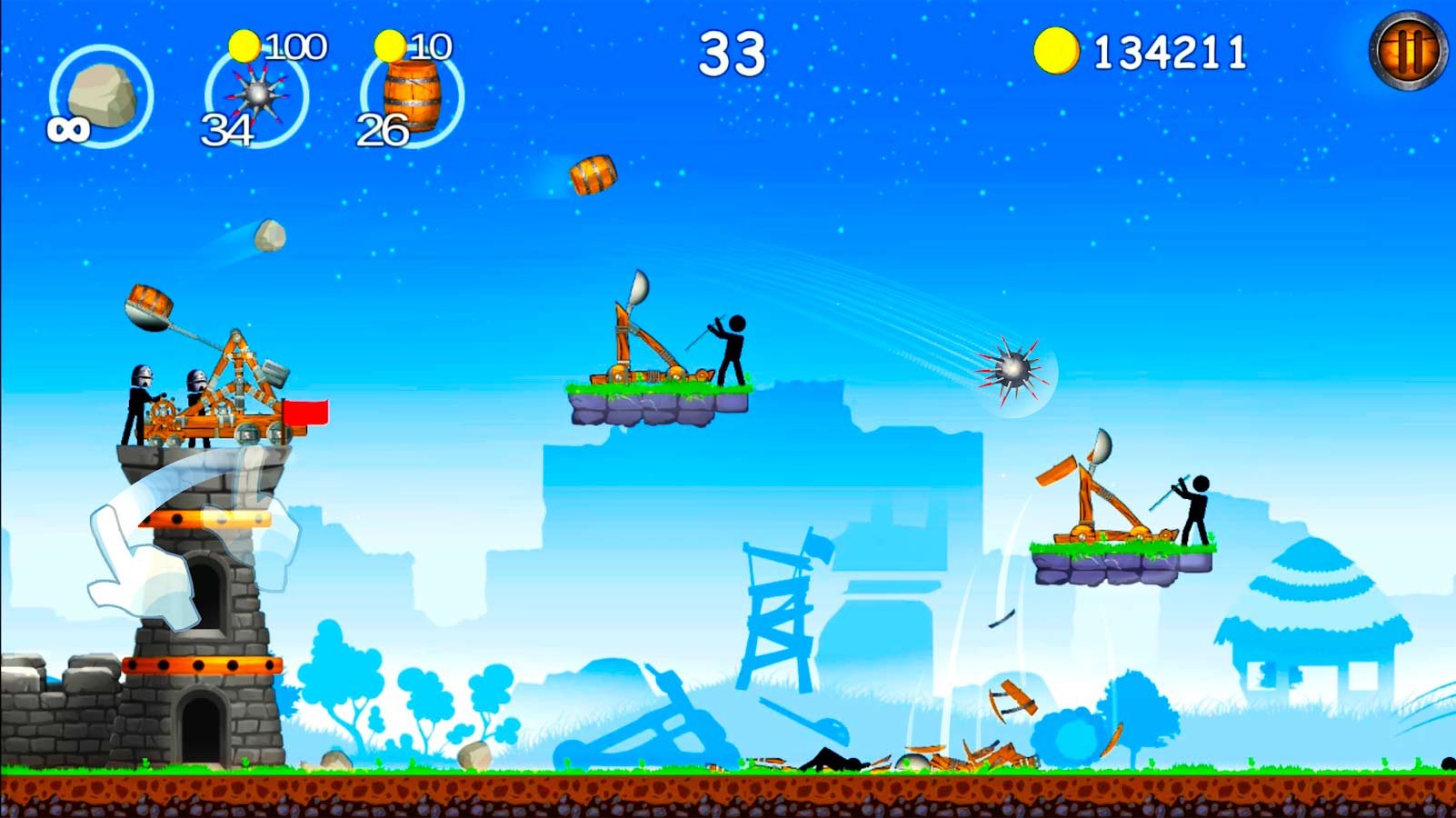 Стикмены пользуются катапультами