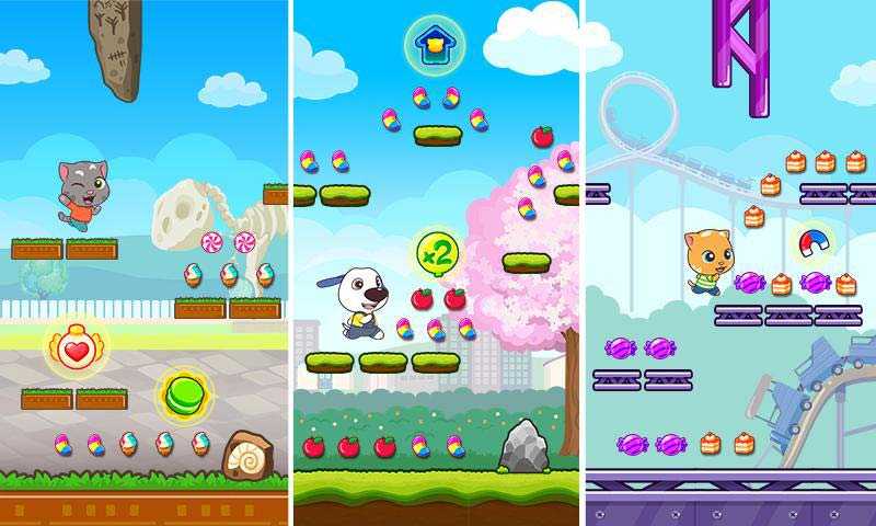 Говорящий Том: за конфетами! – это веселый мобильный раннер с двухмерной графикой и знакомыми персонажами. Отправляйтесь в увлекательное приключение на экране вашего телефона в образе одного из представленных героев. У каждого из них свои уникальные способности, с их помощью вы сможете пройти самые сложные участи уровней и победить особо опасных врагов. А в совсем тяжелые времена вам на помощь придут верные компаньоны, так что даже новички смогут со всем справиться.