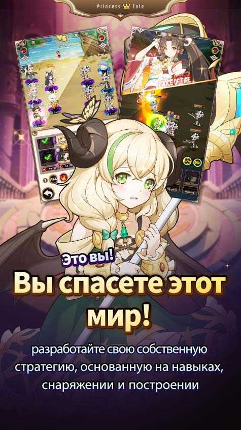 Сказка принцессы – это красочная ролевая игра, которая очарует всех любителей аниме с первой же минуты. Высококлассные иллюстрации, обворожительные персонажи, оригинальная история и многие другие преимущества проекта делают его удивительным приключением. Проработанная система разделения уровней открывает огромные возможности для формирования героев. Интересные стратегические бои станут настоящим испытаем для ваших навыков, так что приготовьтесь к захватывающим баталиям.