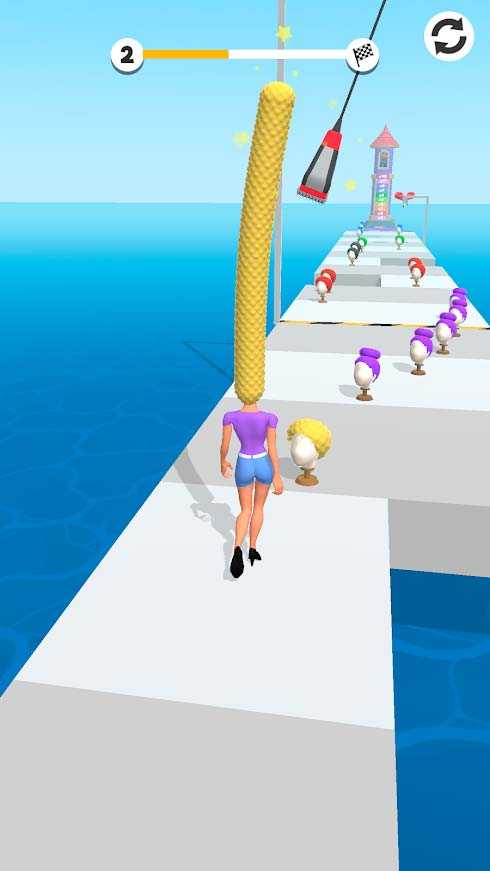 Hair Tower – это необычная мобильная игра, в которой вся ваша сила будет в огромном пучке волос. Идите уверенным шагом по уровню, остерегайтесь стрижки и сделайте все, чтобы спасти прекрасного принца. Веселые испытания для прически помогут также развить ваше внимание, ловкость и скорость реакции. Донесите шикарные волосы до финиша и выполните все задания, наслаждаясь приятным оформлением и затягивающей атмосферой проекта.